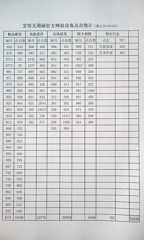 流量统计本人自建【艾明义国画官方网】以来,访客点击70526次,在此,特别感谢。