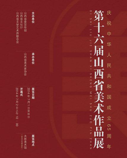 山西太原7月1日讯 由山西省委宣传部、山西省文化厅、山西省文学艺术界联合会共同主办,山西省美术家协会承办的“庆祝中华人民共和国成立65周年.第十六届山西省美术作品展”于七月一日在位于长风文化商务区的太原美术馆开展。展览开幕仪式将于七月二日上午十点举行。