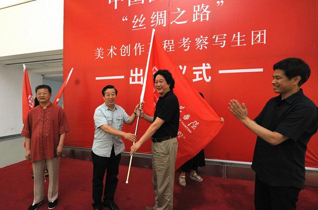 2014年中国国家画院“丝绸之路美术创作工程”考察写生团出发仪式于7月28日下午14:30在中国国家画院美术馆召开。出席本次仪式的有中国美术家协会主席刘大为、主任刘建,文化部办公厅副主任陈发奋,文化部财务司副司长马秦临,文化部艺术司副巡视员程桂荣以及中国国家画院院长杨晓阳,名誉院长龙瑞,副院长卢禹舜、张晓凌、张江舟、赵卫、曾来德等。考察写生团分为海上丝绸之路、陆路丝绸之路、草原丝绸之路三部分,海上丝绸之路由中国国家画院荣誉院长龙瑞、副院长张江舟带队,陆路丝绸之路由国家画院院长杨晓阳、副院长曾来德带队,草原丝绸之路由国家画院常务副院长卢禹舜、副院长赵卫带队。其中陆路丝绸之路将去往银川、西宁、敦煌、嘉峪关、张掖、武威、兰州、天水麦积山、宝鸡、西安等地,重走陆路丝绸之路。出发仪式由国家画院常务副院长卢禹舜主持。
