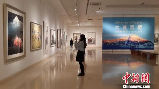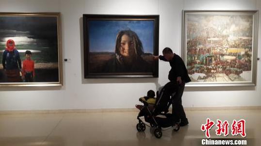 “大美西藏”全国美术作品展在石家庄美术馆开幕,吸引了很多市民观看。