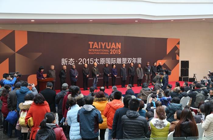 2015年12月12日,“新态·2015太原国际雕塑双年展”在太原市美术馆隆重开幕。本届双年展由中国美术家协会、中央美术学院、太原市政府主办,中国美术家协会雕塑艺委会、中国美术家协会策展委员会、中央美院雕塑系、太原市文化局和太原美术馆承办。中共山西省委常委、宣传部部长胡苏平,中共山西省委常委、太原市委书记吴政隆,中国美术家协会副主席、中国美术馆馆长吴为山,中央美术学院党委副书记王少军,中国美术家协会雕塑艺委会主任、广州美术学院院长、雕塑双年展组委会副主任黎明、中国美术家协会雕塑艺委会副主任、雕塑双年展总策展人陈云岗,中央美术学院雕塑系主任、中国美术家协会雕塑艺委会副主任、雕塑双年展组委会秘书长、总策展人吕品昌,鲁迅美术学院副院长李象群,中央美院教授、中国美协雕塑艺委会副主任曹春生,山西美协名誉主席赵梅生等领导嘉宾,著名雕塑家龙翔、孙振华、殷双喜、傅中望、殷晓峰、霍波阳、景育民、王中、张清渊、邓乐、焦兴涛、董书兵、王志刚、张松涛、张伟等,以及200余位参展作者出席了开幕式。开幕式由太原市副市长、雕塑双年展组委会副主任王爱琴主持。