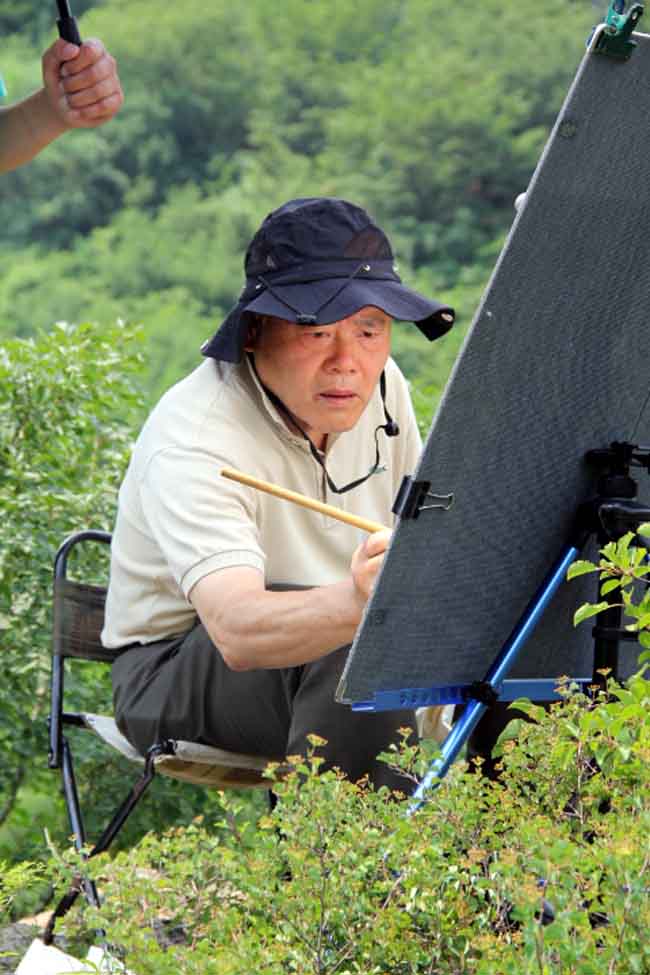 【诗画朝阳】书画展从2015年4月份正式开始筹备,2015年5月首次迎来文化部中国山水画创作院叶浓、齐宏伟、牟丕芳、毕冠良四位画家来朝阳,分别到凤凰山、燕山湖、牛河梁、天秀山采风写生。 2015年6月,由著名山水画家李小可老师带队,丁长林、刘秦州、吴天成等画家来朝阳创作写生,先后到清风岭、槐树洞、劈山沟、朝阳鸟化石国家地质公园等风景区,共出画作90幅,另中国书法名家赵铁信、漠公、王希坤、董树进先生书写歌颂朝阳书画诗篇20余幅,将为朝阳市美术界和广大观众呈现最美朝阳书画展览。