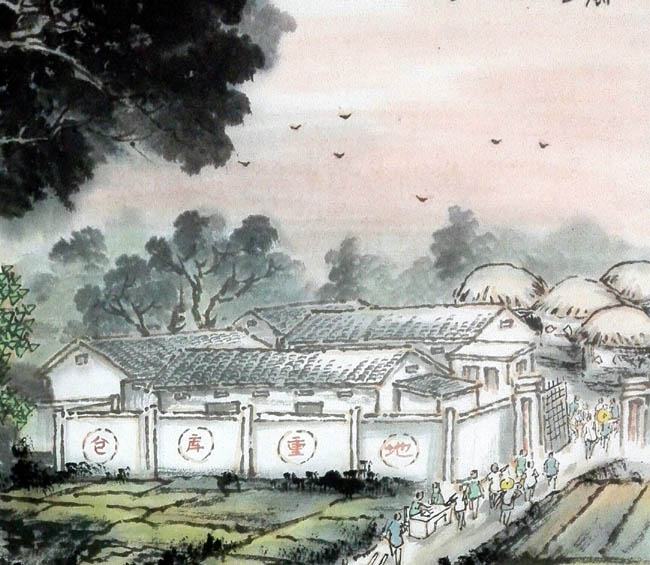 刘东方家乡回望记事性国画作品之:交公粮(局部)