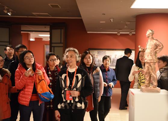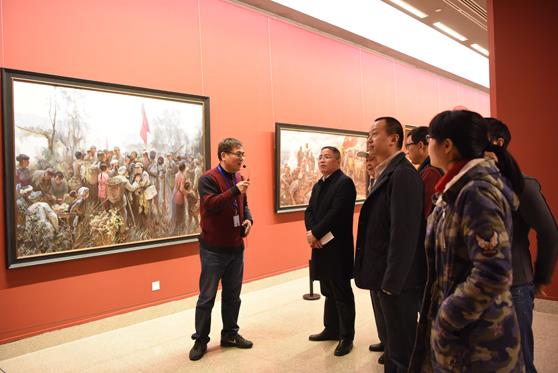 中国美术馆2016年11月4日讯 今年是红军长征胜利80周年,10月21日,习近平总书记发表了“在纪念红军长征胜利80周年大会上的讲话”。为了更好地弘扬伟大的长征精神,走好今天的长征路,11月1日,中国美术馆依托正在展出的“纪念中国工农红军长征胜利80周年美术作品展览”,精心策划组织了一场“追忆长征历史,传承长征精神”主题教育活动,活动邀请来自科学出版社的100余位党员干部和北京武警总队一支队的官兵走进中国美术馆。在导赏老师的带领下,借助艺术作品的独特感染力,共同回顾了那段苦难与光辉的岁月,铭记长征的丰功伟绩,弘扬伟大的长征精神,走好今天的长征路。