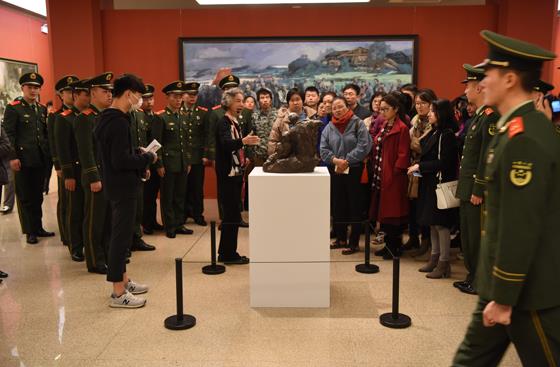 活动结束后,官兵和党员同志们久久不愿离去,纷纷与作品合影。一位科学出版社的党员同志感慨地说:“只有这种不畏艰险、不怕牺牲的强大精神力量,才能引领中国走向最终的胜利。中国美术馆借助美术的独特感染力和震撼力,为广大党员上了一堂生动的党课,丰富了党员群众的学习形式,我们感到受益匪浅。希望以后中国美术馆可以多多举办此类活动。”