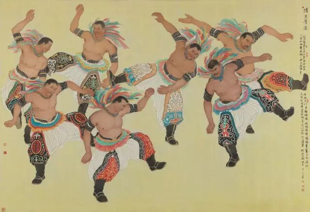 ▲胡勃-《搏克鹰姿》-纸本设色-210cm×310cm-2016年