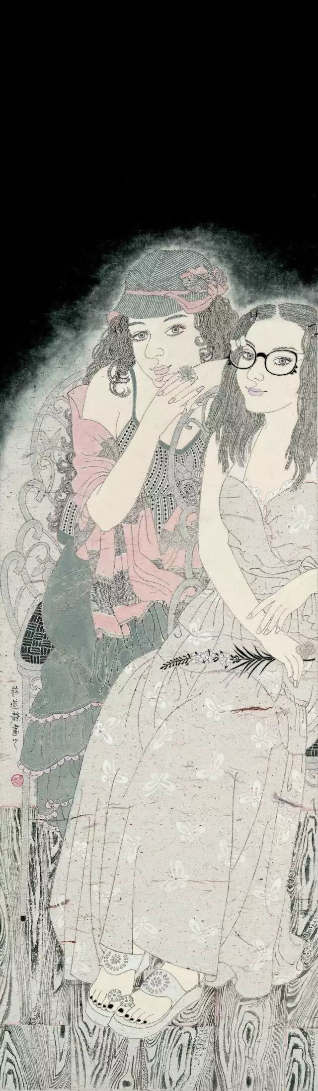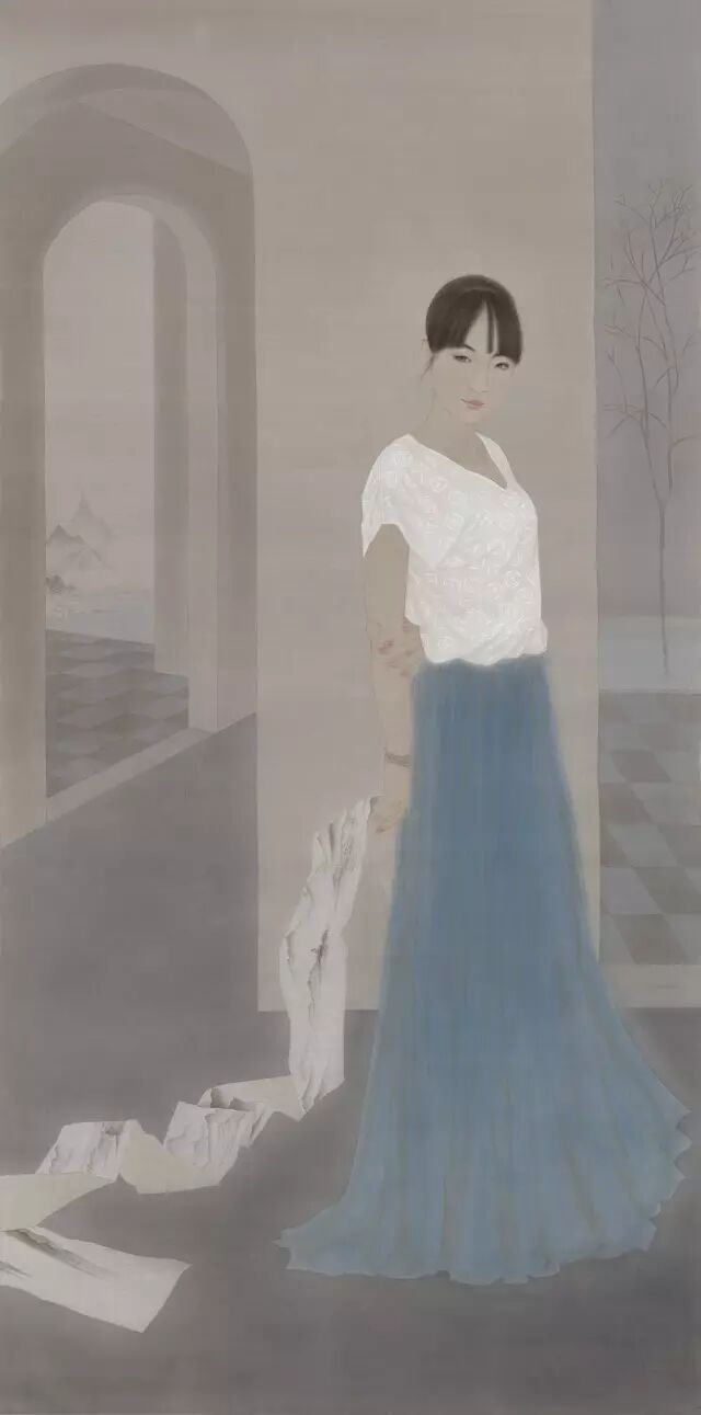 ▲袁玲玲-《似水流年之六》-绢本设色-240cmx90cm-2011年