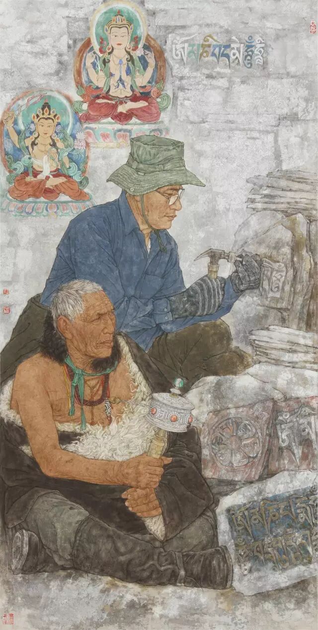 ▲王骁勇-《甘南记事之二》-纸本设色-140cmx70cm-2013年