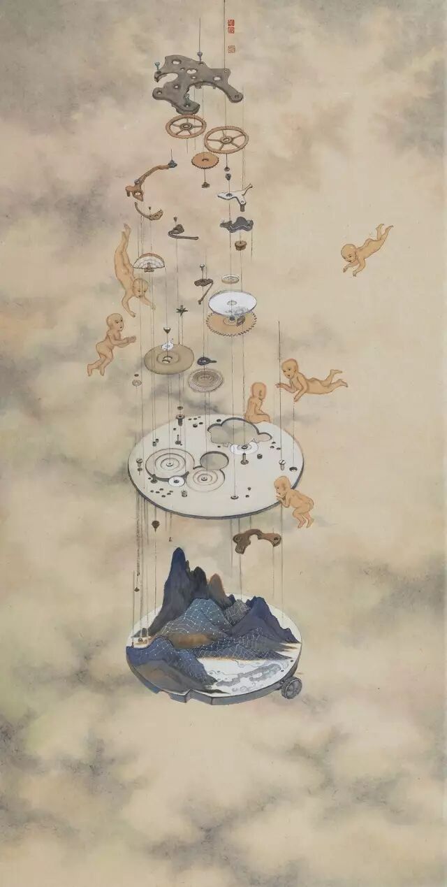 ▲赵丽娜-《时间简史系列之一》-纸本设色-136cmx68cm-2015年