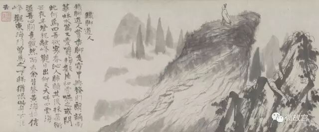 石涛(1642-1707)原名朱若极,广西桂林人,明靖江王后裔。他出生不久即遭遇国变和家变,遂由家臣护送逃至全州避祸,后在当地湘山寺出家为僧,法名原济(其款印中也有作“元济”者),字石涛,别号济山僧、小乘客、清湘老人、苦瓜和尚、瞎尊者、大涤子等。从此,石涛开始云游四方,足迹遍布湖广、苏浙皖等地,饱览名山大川,广交各方朋友,以禅宗悟画理,以自然养画境,于当时画坛盛行的摹古风气之外,独开生面,令人耳目一新,遂使艺名日隆。石涛曾因两次迎驾康熙南巡,而于1690年受邀北上北京,以期拓展自己的艺术空间;但居京不到三年便南还,再次游历苏、皖各地,并逐渐公开了自己明宗室的身份;晚年回到扬州定居,建大涤草堂,出佛入道,靠卖画为生。