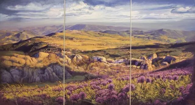 彭严迪、彭承军、梁文 《贵州屋脊韭菜坪》 油画 200x360CM