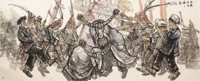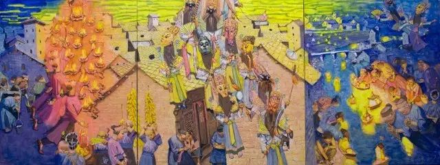 赵嘉陵 《苗族姊妹节》 油画 180x480CM