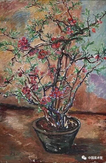 6刘海粟《东风吹开朵朵红》,94cm×62cm,油画,1960年,常州刘海粟美术馆藏