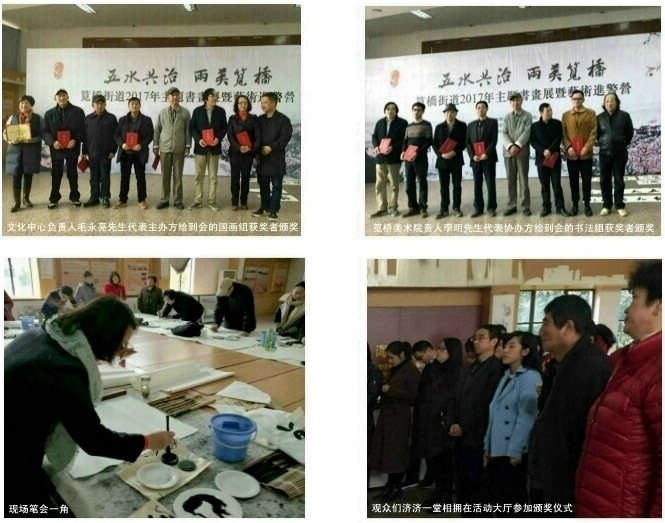 浙江杭州讯 2017年12月1日,由杭州笕桥街道及其文化中心、各社区,笕桥美术院等单位共同举办的,一场名为“‘五水共治·两美笕桥’主题书画展暨艺术进警营”现场笔会及颁奖活动,在杭州笕桥文化中心会议大厅隆重举行,来自杭州笕桥街道及其各社区的有关领导及笕桥美术院的艺术家们济济一堂,相拥在活动大厅。