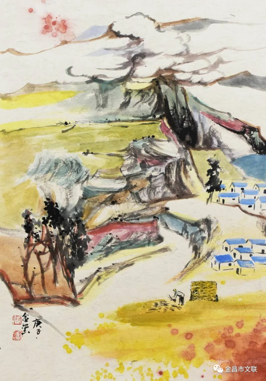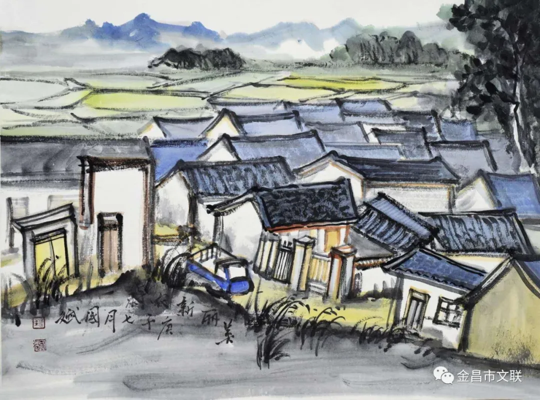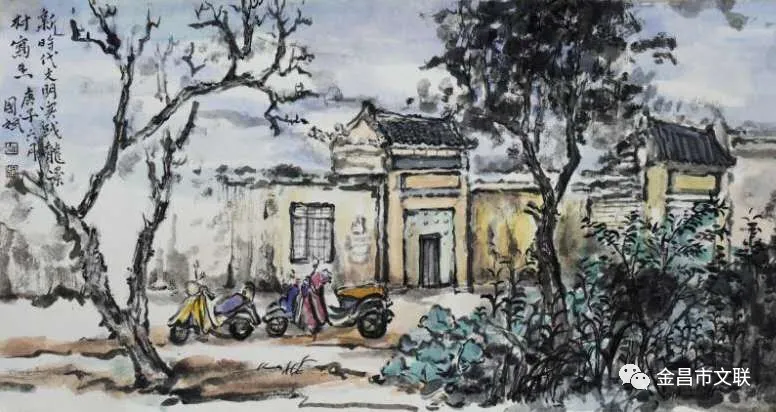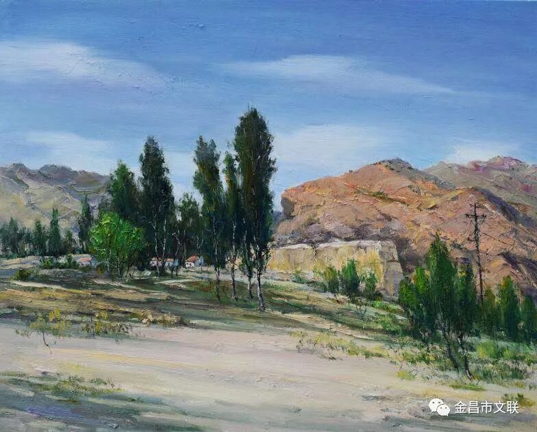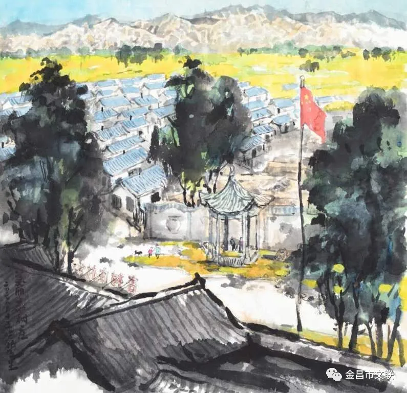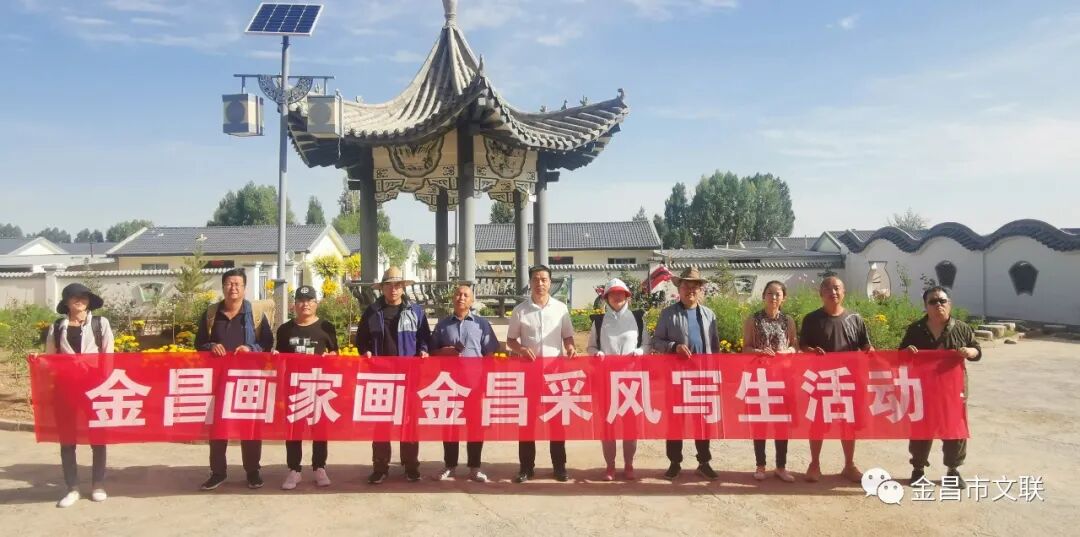 在习近平总书记视察甘肃一周年之际,近日,金昌市文联积极组织全市广大美协会员走进全面建成的省级示范村·焦家庄乡杏树庄村、紫金花海、“野狐湾”青少年研学基地、圣容寺旅游景区等地,用手中的画笔描绘金昌美丽的新家园、书写金昌新蓝图。