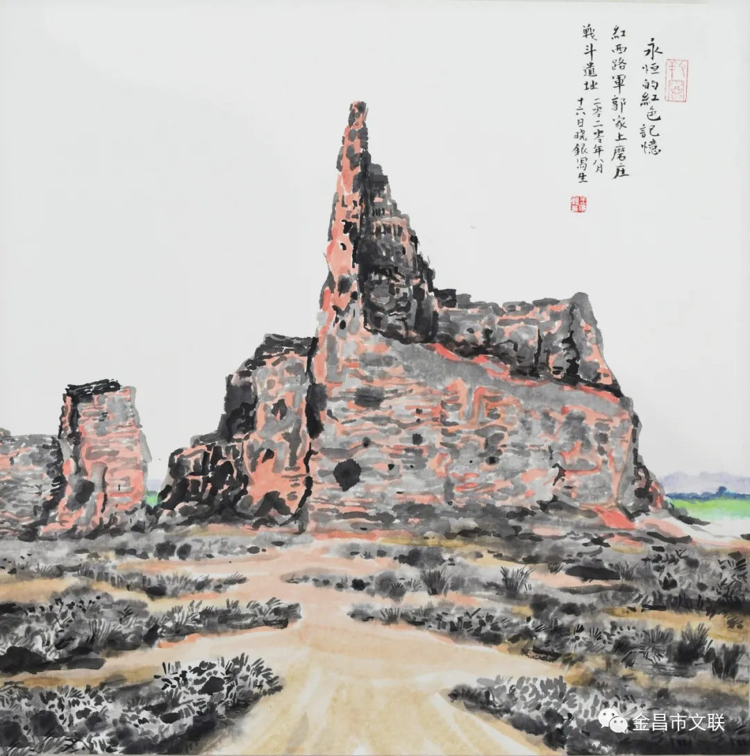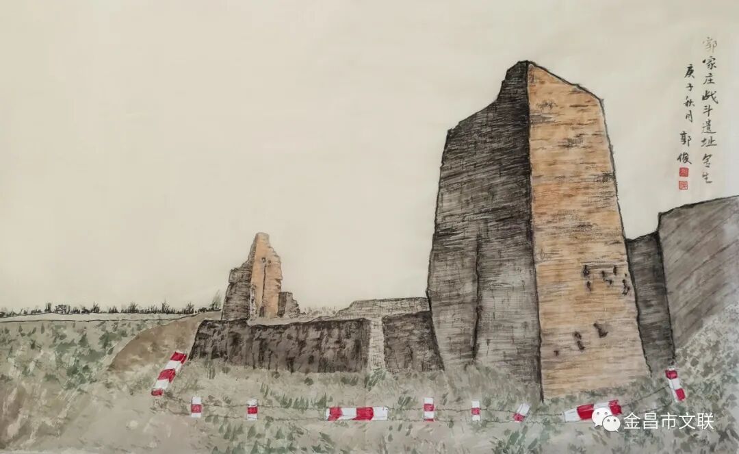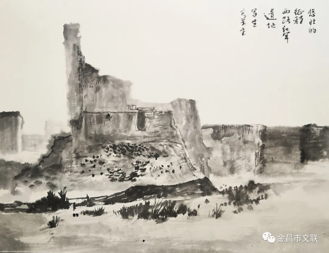 重温西路红军战斗遗址,缅怀先烈,弘扬红色革命精神。走进郭家上磨庄遗址、勾家西庄战斗遗址、西路军烈士纪念馆,感悟西路红军烈士英勇奋战,抛头颅、撒热血的征程,面对弹痕累累的断壁残垣,每一处遗址都让画家们思绪万千,深深震撼,体会到我们今天幸福生活、美丽家园的来之不易。