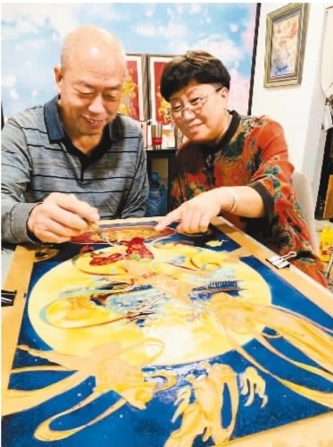图为刘广全(左)、张英(右)夫妇正在“点蓝”。受访者供图