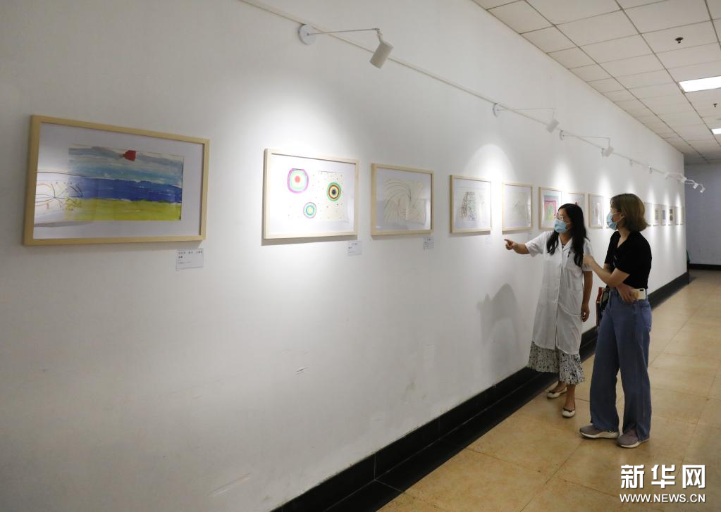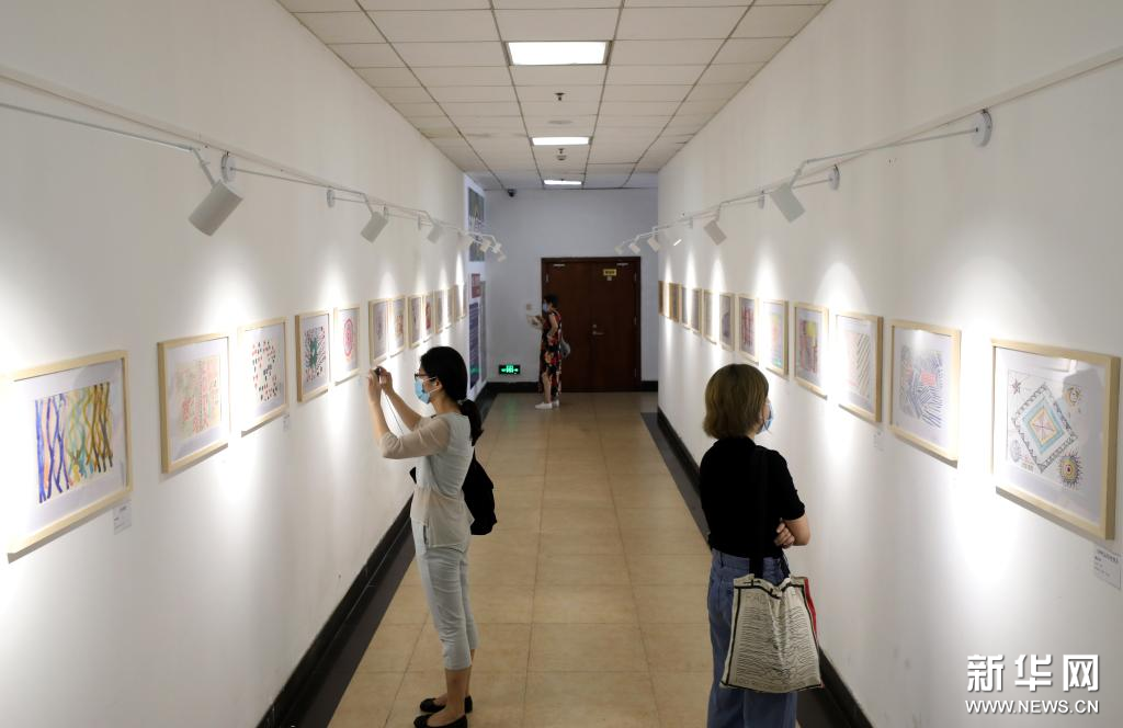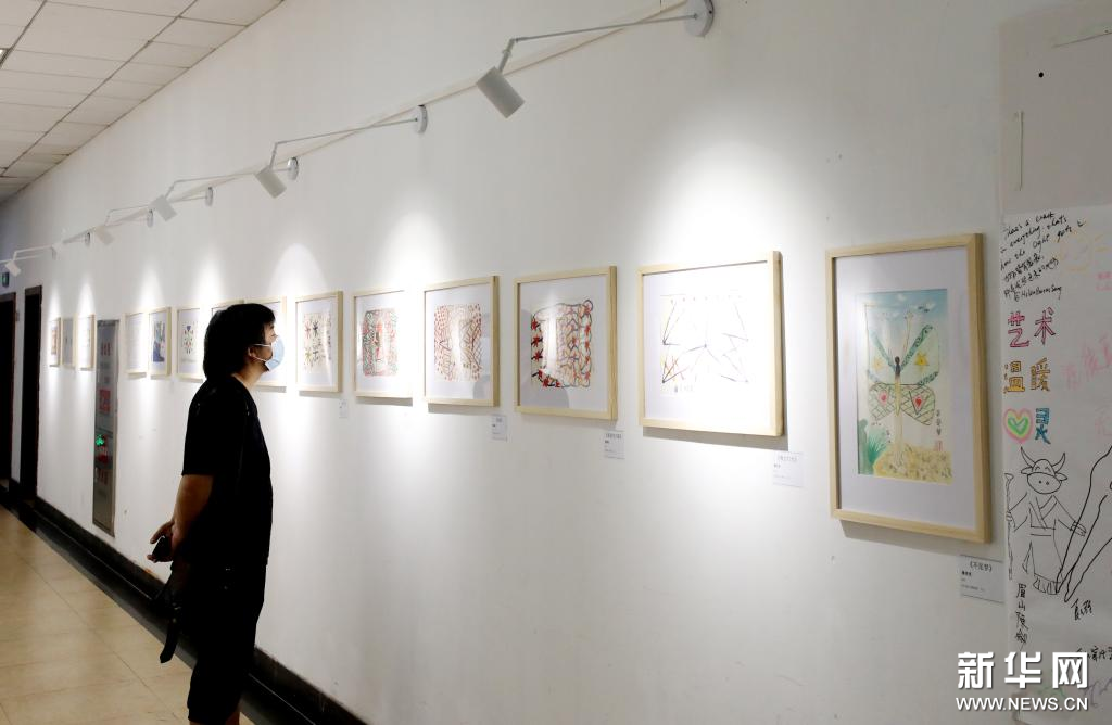 8月27日,参观者在画展上观看展出的绘画作品。近日,“线条、颜色和故事——原生艺术展”在上海600号画廊举行。画廊位于上海市宛平南路600号,这里是上海市精神卫生中心所在地,本次画展展出绘画作品60余幅,都出自在中心进行康复治疗的精神障碍患者之手。新华社记者 方喆 摄