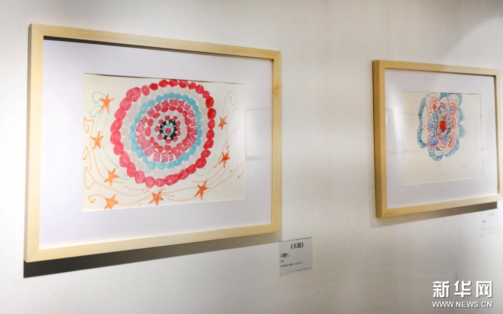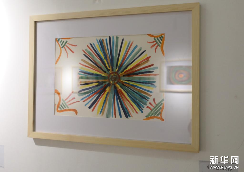 8月27日拍摄的画展上名为《光芒四射》的绘画作品。新华社记者 方喆 摄
