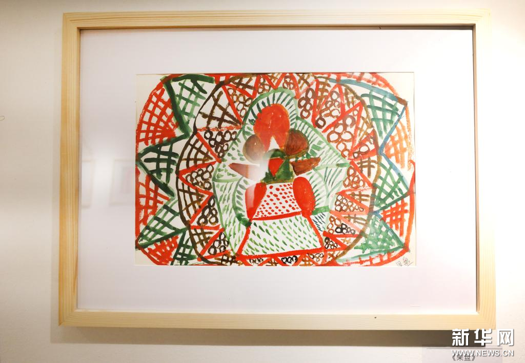 8月27日拍摄的画展上名为《果盘》的绘画作品。新华社记者 方喆 摄
