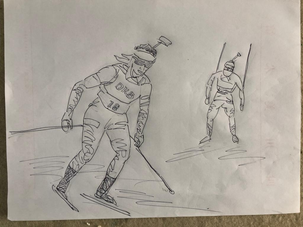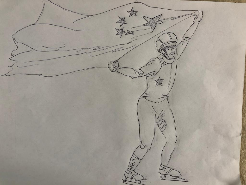 翻看着厚厚一叠速写稿纸,梁时民颇为满意:“目前已经积累了有好几十幅了。它们都是我接下来一段时间创作的素材。”梁时民说,比如前段时间他在电视上看到两位花样滑冰选手,觉得他们的姿态很优美,两个人之间那种默契配合的感觉使其很受感染,便速写了下来。“等这些素材全部搜集完成后,我准备做个关于北京冬奥的系列创作和展览,来宣传在这场盛会中我们大国的担当和民族自信。”