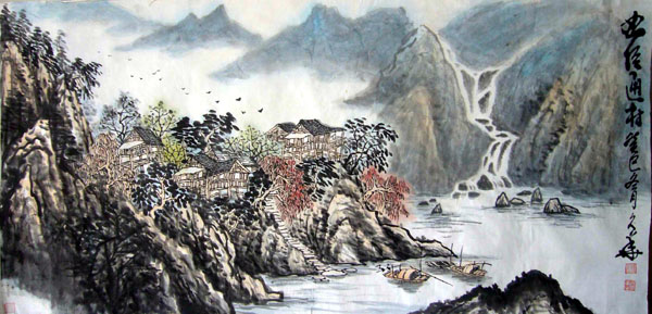 边久华山水画:《曲径通幽》作品规格:139x68(cm)