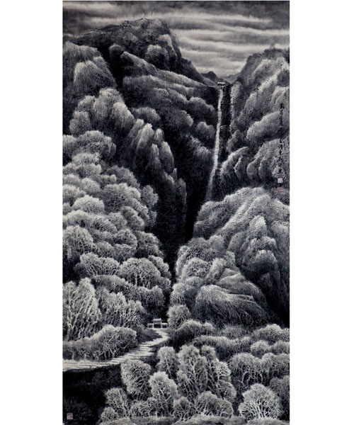 刘坤先生作品欣赏-《山水清音图》(138X69CM)
