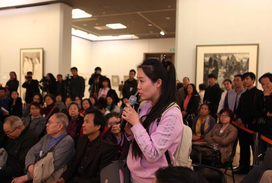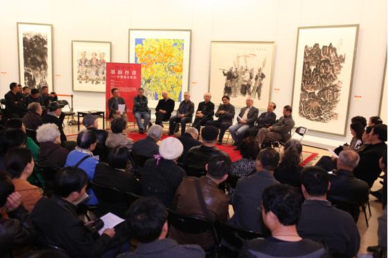 在接下来的环节,各位嘉宾结合各自的创作、研究、思考,就中国画发展的不同问题展开讨论,并回答了听众的提问。其中,一位听众就当代中国画众多的绘画形式和表现手法提出何为中国画界限、中国画的特质及定义的问题。这位观众的问题,激起中国画学会各位嘉宾的浓厚兴趣,大家纷纷表达观点意见。薛永年先生从中国民族文化精神、与哲学诗歌的关系、与书法的关系三个角度解释了这个问题。而刘国辉先生幽默风趣的以“通婚”作比喻,表示文明的发展需要交流,对于其它的艺术形式的冲击我们应该拥抱融合而不是划清界限。其余各位艺术家结合中西方文化等对当代中国画现状以及传承发展的问题作了深刻的讨论。